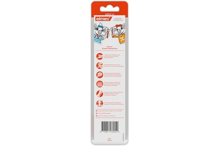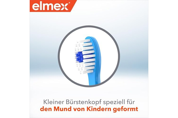 Details & Lieferumfang – elmex Zahnbürste für Kinder, Kinderzahnbürste ab 2 Jahren mit weichen, abgerundeten Borsten und ergonomischem Griff für den täglichen Gebrauch, 2 Stück
