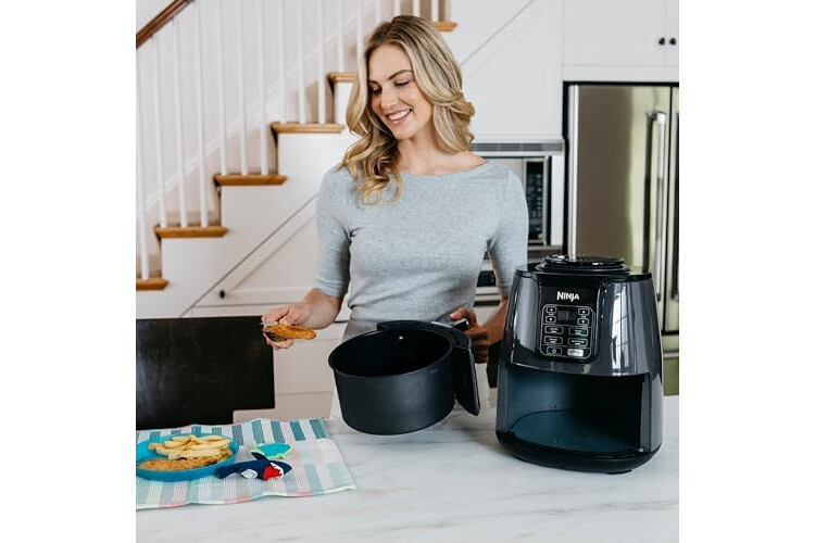 BEINHALTET: Ninja Foodi Air Fryer, antihaftbeschichteter, spülmaschinenfester 3,8L Kochtopf und Crisper-Gittereinsatz. Von Chefköchen erstellter Rezeptführer. Farbe: Grau/Schwarz