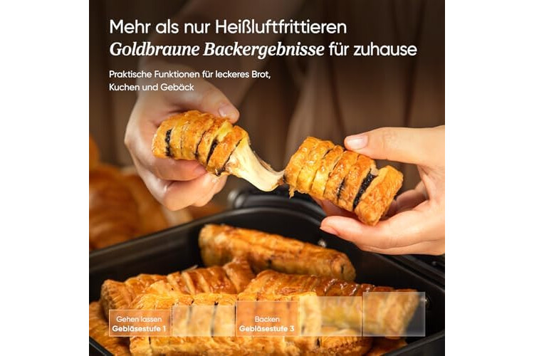𝗦𝗻𝗮𝗰𝗸𝘀 𝗷𝗲𝗱𝗲𝗿𝘇𝗲𝗶𝘁 𝘇𝘂𝗯𝗲𝗿𝗲𝗶𝘁𝗲𝗻:Mit den Gebläsestufen 4 und 5 für Aufwärmen und Auftauen lassen sich schnell und einfach leckere Snacks für zwischendurch zubereiten – egal, ob du es lieber süß oder herzhaft magst.