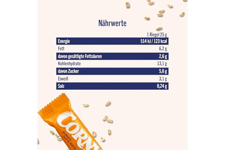 Corny Müsliriegel werden mit wertvollem Getreide und knackigen sowie gerösteten Erdnüssen hergestellt - ganz ohne Farbstoffe und ohne Zusatz von Konservierungsstoffen