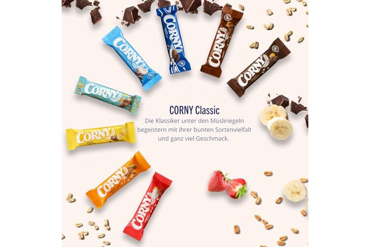 Seit Jahrzehnten überzeugt und begeistert Corny mit Qualität und ausgefallenen Ideen für immer neue Überraschungen und Geschmäcker - Müsliriegel, Haferrigel, Proteinriegel - Snacks für jedermann und jeden guten Geschmack