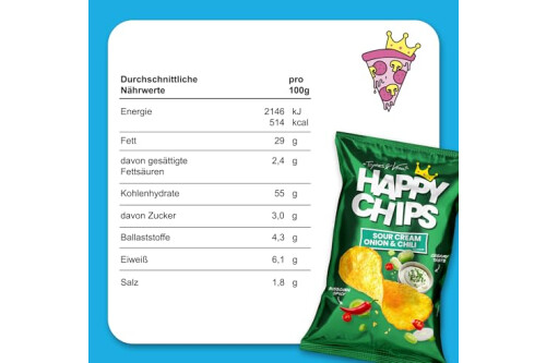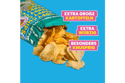 Happy Chips by Trymacs & Knossi® (10x 150g) Sour Cream Onion & Chili | Limited Edition | Extra knusprig | Chips Grosspackung | Party Box | Snackbox | Salzige Snacks | Knabberbox | Chips Box