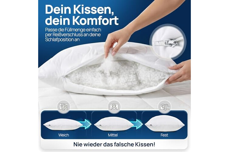 ✅ INDIVIDUELL ANPASSBAR – Das Lileno Home Allergiker Kissen 80x80 ist ideal für Ihre individuellen Bedürfnisse. Unsere Bett Kissen sind mit einem praktischen Reißverschluss ausgestattet, sodass Sie die Füllung nach Belieben hinzufügen oder entfernen können – Wie für Sie gemacht!