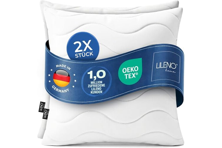 LILENO HOME Allergiker Kopfkissen 80x80 (2er Set) – 95°C waschbar, Oeko-Tex & Made in DE – Kissen 80x80 anpassbar für himmlischen Schlaf – Haut schmeichelndes & geruchsfreies Pillow