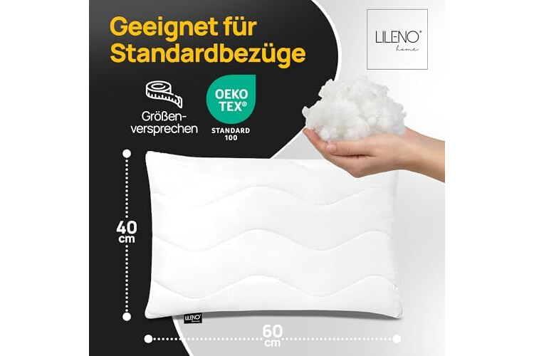 LILENO HOME Kopfkissen 40x60 (2er Set) – 95 °C waschbar, Oeko-Tex & Made in DE – Allergiker Kissen 40x60 für himmlischen Schlaf – Haut schmeichelndes & geruchsfreies Pillow