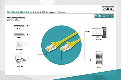 Das 0,25 Meter (25 cm) lange Ethernet-Kabel der Kategorie 6A überträgt Daten mit Geschwindigkeiten bis zu 10000 Mbit/s (10 Gbit/s) zum Beispiel für Glasfaser-Internet Geschwindigkeiten im Heim-Netzwerk
