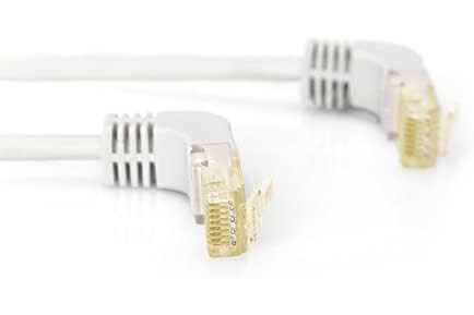 DIGITUS LAN Kabel Cat 6A - 7m - 90° Gewinkelter Stecker - RJ45 Netzwerkkabel - S/FTP Geschirmt - Grau