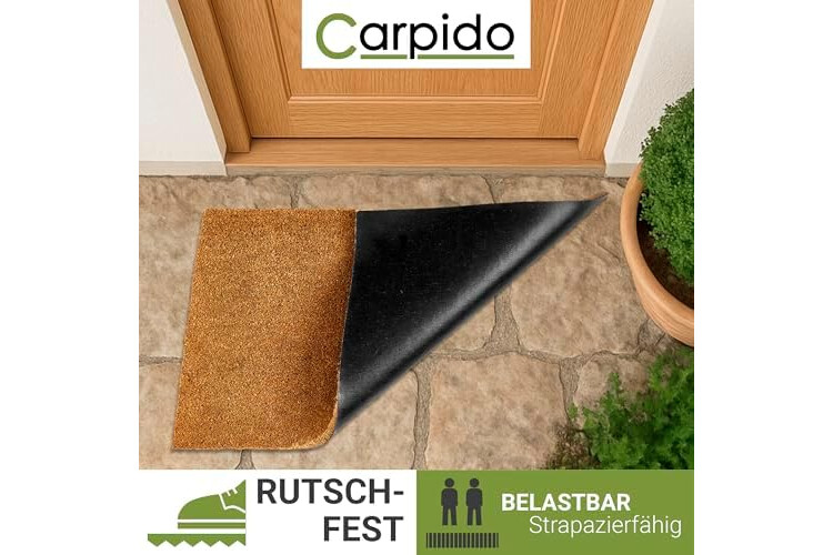 Carpido rutschfeste Kokosmatte - 50 x 80 cm Natur - Nachhaltige Naturfaser für den überdachten Außenbereich - 100% Kokos Fußmatte - Türmatte Eingang