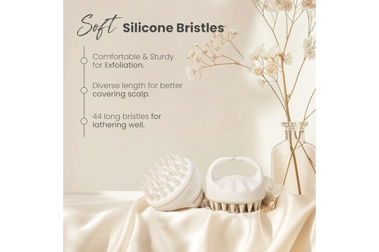 🛀【Wirklich saubere Kopfhaut】 im Vergleich zum Waschen mit der Hand können die längeren Silikonborsten (0,67 Zoll) des haarmassagebürstens problemlos Ihr dickes Haar durchdringen, um die Kopfhautwurzeln zu erreichen und dabei helfen, Schmutz wie Schuppen, Öl und Ablagerungen von Ihrer Kopfhaut und Ihrem Haar zu entfernen.