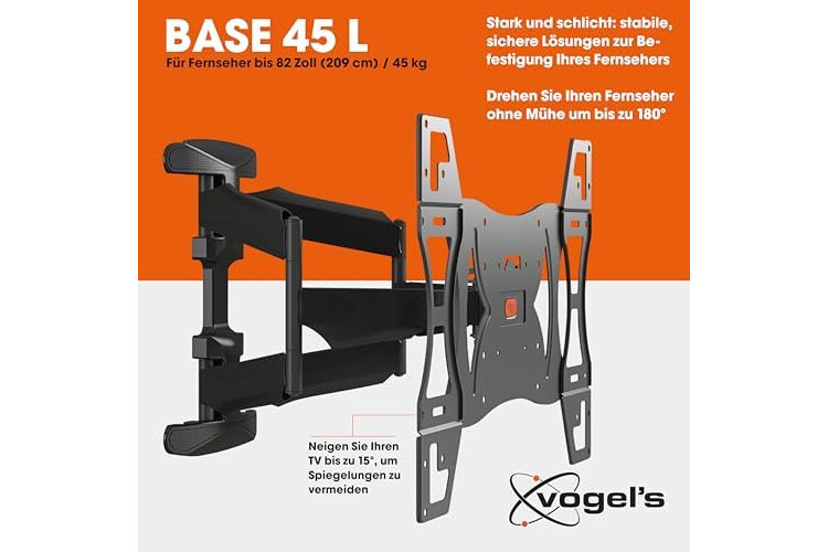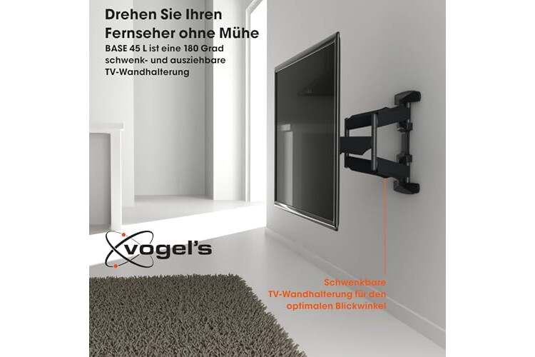 Vogel's Base 45 L schwenkbare TV Wandhalterung für 40-80 Zoll Fernseher, max. 45 kg, bis zu 180° Schwenkbar, neigbar, Fernsehhalterung, max. VESA 600x400, Universelle Kompatibilität, TÜV-Zertifiziert