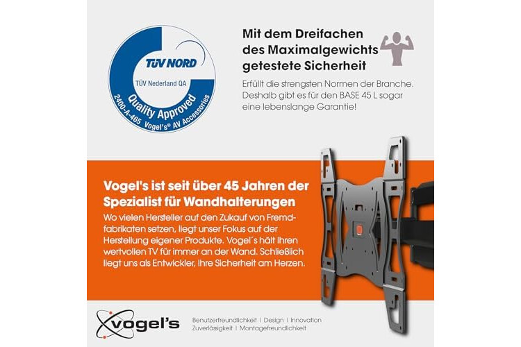HOHE QUALITÄT UND LEBENSLANGE GARANTIE: Vogel’s hat mehr als 45 Jahre Erfahrung mit dem designen und herstellen von Halterungen für Unterhaltungselektronik, daher besteht Lebenslange Produktgarantie