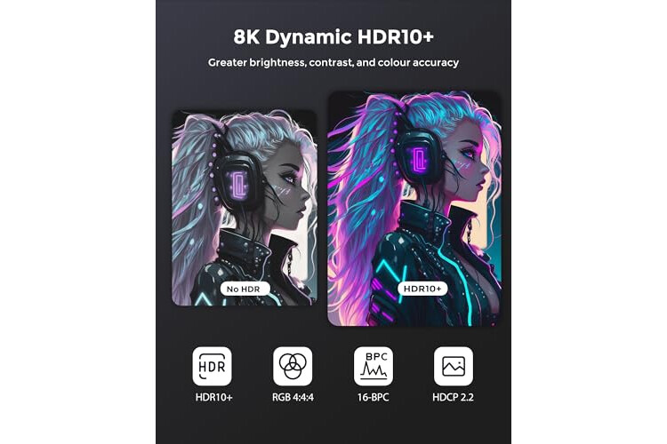 📺【Echtes 8K-HDMI-2.1-Kabel】 – Dieses 8K-HDMI-Kabel nutzt die modernste Technologie, ist kompatibel mit 8K@60HZ und 4K@120HZ, zeigt jedes Partikel deutlich an und verarbeitet jede Signalquelle präzise. Mit der einzigartigen dynamischen HDR- und 12-Bit-Farbverarbeitungstechnologie von 8K HDMI entspricht jede Szene des Videos jedem Einzelbild, mit idealerer Tiefe, Helligkeit, Detailgenauigkeit, Kontrast und größerem Farbraum.