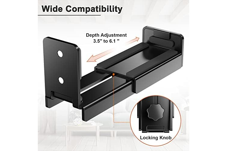 Mehrere Einstellungen: :Der Verriegelungsknopf unter jeder Mittelkanal-Lautsprecher-Wandhalterung sorgt für eine mühelose und schnelle Tiefeneinstellung. Einstellbare Tiefe bietet große Kompatibilität für fast jede Marke Soundbar von 90-154mm Tiefe
