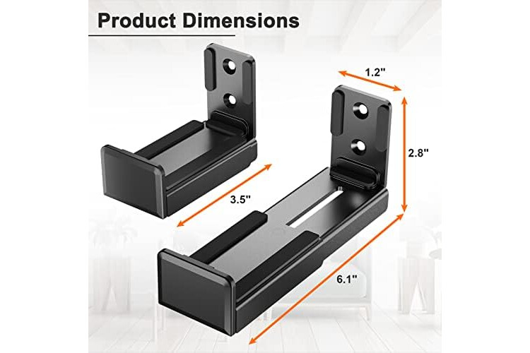 Frei Platz: Die verstellbaren Soundbar-Halterungen bieten den Komfort, die Soundbar an der Wand unter oder über einem Fernseher – oder an einer anderen Wandposition zu befestigen, schafft einen gepflegten Look und spart Platz, ohne Bohrlöcher an der Wand zu vermeiden