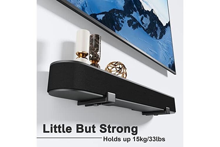 Ausgezeichnetes Design: Die Soundbar Wandhalterung ist ein universelles Wandmontageset. Diese Sound Bar Halterung kompatibel mit jeder Soundbar mit Löchern oder ohne Löcher von Kapazität bis zu 15kg.Weiche Anti-Rutsch EVA Pads schützen die Soundbar vor Kratzern und entfernen alle Vibrationen von Audio während des Gebrauchs. Das unauffällige Design ermöglicht es dem Auge, sich auf die Soundbar und nicht auf die Halterungen zu konzentrieren