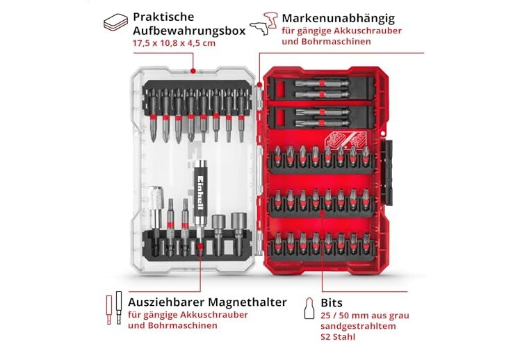 Markenunabhängig – Passend für alle gängigen Bohrfutter und Bithalter in handelsüblichen Akkuschraubern und Bohrmaschinen, bietet das Bit-Set von Ein...