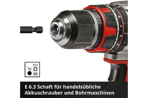 Schnellwechselbithalter – Für einen schnellen und einfachen Bitwechsel sorgt der 60 mm lange Schnellwechselbithalter des Einhell Bit-Sets, der aus Karbonstahl besteht und über einen E 6.3 Schaft verfügt.