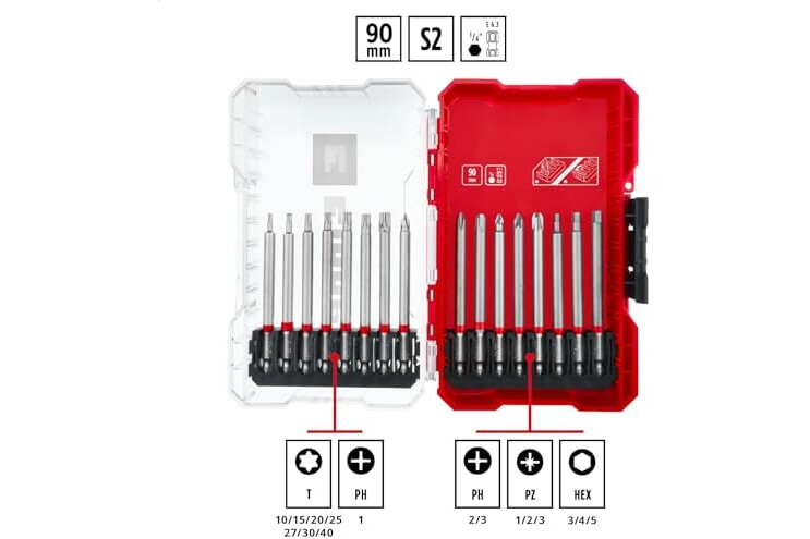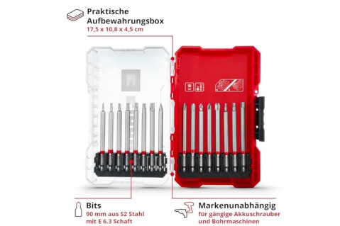 Lieferumfang | 16x Bits in 90 mm, 1x Aufbewahrungsbox |