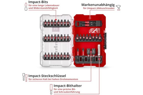 Schlagfeste Bits – Im Einhell Set enthalten sind 25-mm-Bits mit C 6.3 Schaft und 50-mm-Bits mit E 6.3 Schaft aus manganphosphatiertem S2 Stahl, die mit ihrer Langlebigkeit überzeugen.