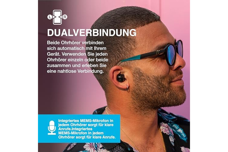 AUTOMATISCHE VERBINDUNG & GOOGLE FAST PAIR: Die Go Air Pop+ True Wireless Kopfhörer verbinden sich automatisch mit Ihrem Gerät, sobald sie aus dem USB-C-Ladecase genommen werden. Mit Google Fast Pair koppeln Sie Android-Geräte und finden verlorene Bluetooth Kopfhörer In Ear wieder. Dank Bluetooth 5.3 erleben Sie unsere schnellste Verbindung