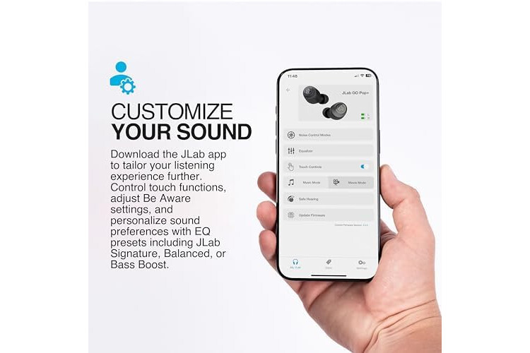 BENUTZERDEFINIERTER SOUND ÜBER JLAB APP: Verwenden Sie die JLab App, um Ihre Go Air Pop+ In Ear Kopfhörer kabellos anzupassen, einschließlich Be Aware, Touch...