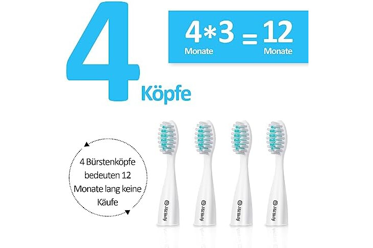MitButy Zahnbürstenaufsätze Ersatzköpfe für elektrische Zahnbürsten mit Sonic-Puls-Technologie zur Zahnreinigung/Plaque-Entfernung Erwachsene Packung mit 4 Bürstenköpfen in Weiß