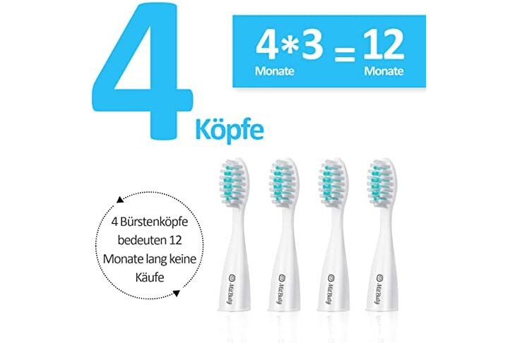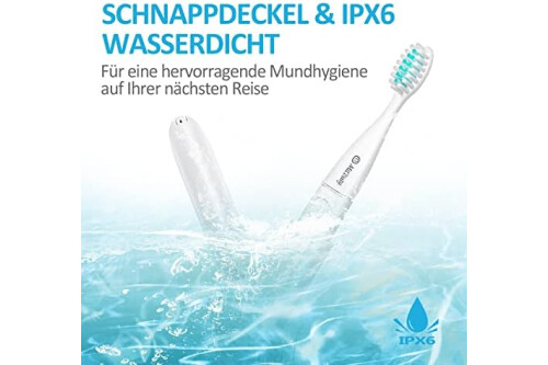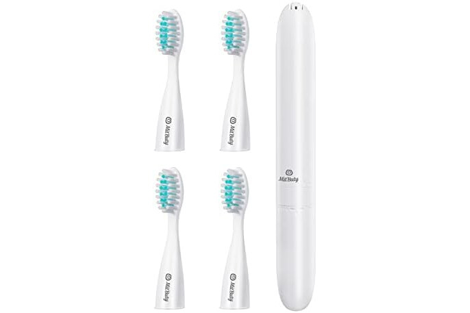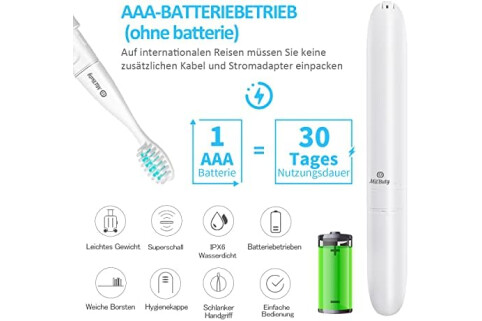 MitButy Elektrische Zahnbürste Reise mit 4 Bürstenköpfen, batteriebetriebenes, wasserdichtes, tragbares elektrisches Schallzahnbürsten Set-mit aufsteckbarem Reiseetui, ideal für Reisen/Geschäft/Urlaub