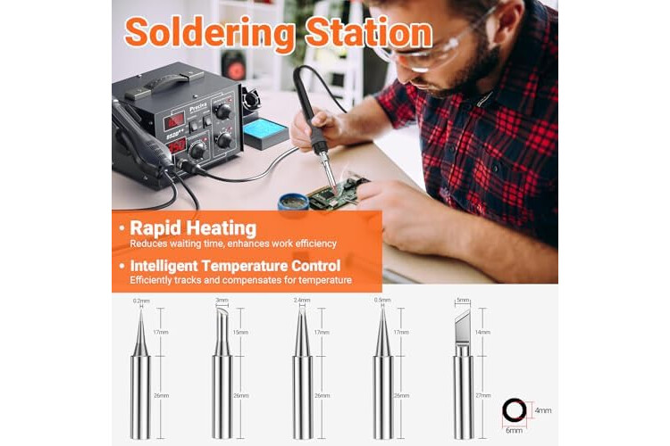 ✅ 𝗛𝗼𝗰𝗵𝘄𝗲𝗿𝘁𝗶𝗴𝗲 𝗡𝗶𝗰𝗸𝗲𝗹-𝗖𝗵𝗿𝗼𝗺-𝗛𝗲𝗶𝘇𝘄𝗲𝗻𝗱𝗲𝗹 & 𝟰𝟬𝗪-𝗟ö𝘁𝗸𝗼𝗹𝗯𝗲𝗻 - Präzises Löten und Entlöten dank schneller Aufheizung und stabiler Temperaturhaltung (100-500°C). Inkl. 5 Lötspitzen für verschiedene Anwendungen – von feinen SMD-Reparaturen bis zu größeren THT-Verbindungen.
