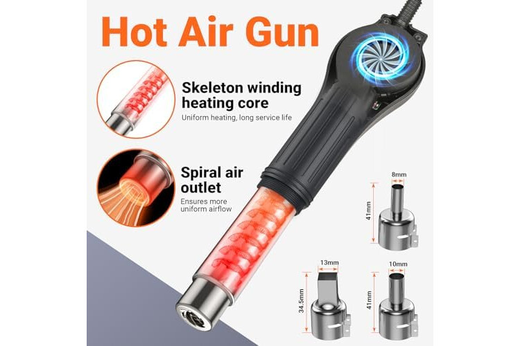 ✅ 𝗕ü𝗿𝘀𝘁𝗲𝗻𝗹𝗼𝘀𝗲𝘀 𝟳𝟬𝟬𝗪-𝗛𝗲𝗶ß𝗹𝘂𝗳𝘁𝗴𝗲𝗯𝗹ä𝘀𝗲 𝗺𝗶𝘁 𝘀𝘁𝘂𝗳𝗲𝗻𝗹𝗼𝘀𝗲𝗺 𝗟𝘂𝗳𝘁𝘀𝘁𝗿𝗼𝗺 (≤𝟭𝟮𝟬𝗟/𝗺𝗶𝗻) - Leistungsstarker, aber sanfter Luftstrom (100-500°C einstellbar) für präzises Arbeiten – ideal zum Schrumpfen von Schlauch, Trocknen von Leiterplatten oder Entfernen von Lack, ohne umliegende Bauteile zu beschädigen. Dank Nickel-Chrom-Heizwendel schnelle Aufheizzeit und langlebige Performance.