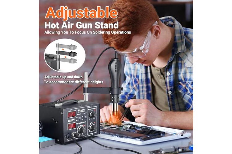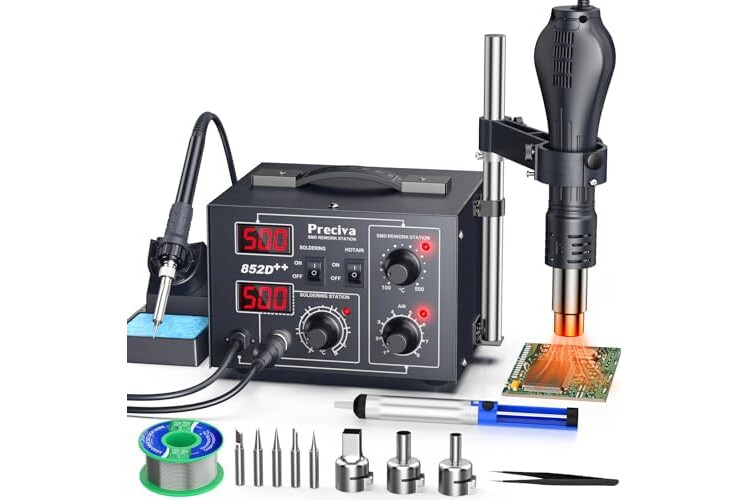 Heißluft Lötstation, Preciva 852D++ Digitale Lötstation mit Doppel Display Höhenverstellung für Heißluftpistole, 2-in-1 SMD Rework Station 100-500°C für Reparaturen und Modellbau