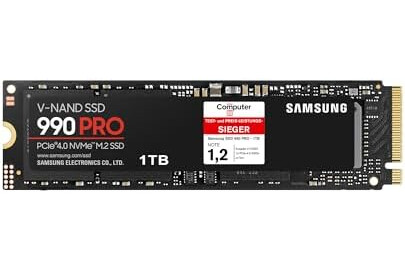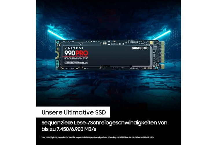 Samsung 990 PRO NVMe M.2 SSD , 1 TB, PCIe 4.0, 7.450 MB/s Lesen, 6.900 MB/s Schreiben, Interne SSD für Gaming und Videobearbeitung, Schwarz, MZ-V9P1T0BW