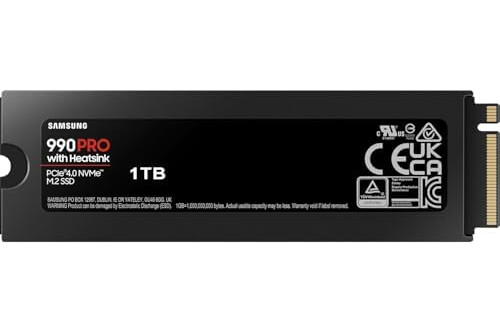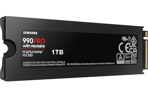 Samsung 990 PRO NVMe M.2 SSD mit Heatsink, 1 TB, PCIe 4.0, 7.450 MB/s Lesen, 6.900 MB/s Schreiben, Interne SSD für PC-/Konsolen-Gaming und Videobearbeitung, MZ-V9P1T0CW