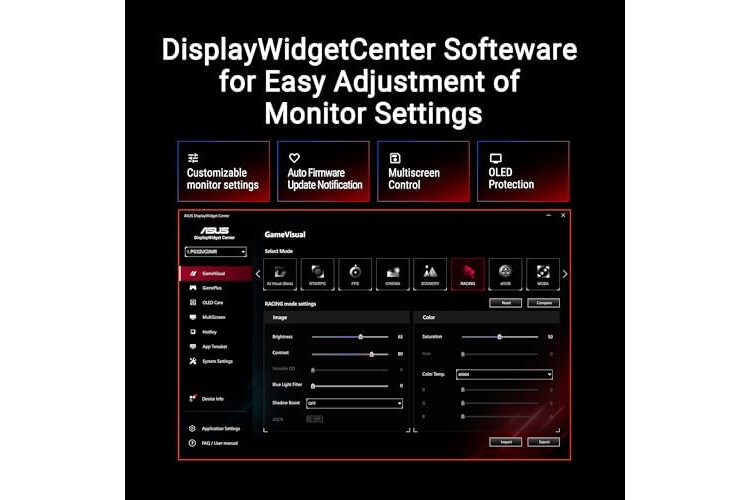 DisplayWidget Center ermöglicht den Zugriff auf OLED Care-Funktionen und die Anpassung der Monitoreinstellungen mit der Maus