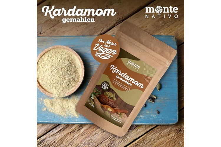 Kardamom gemahlen Monte Nativo (150g) - Ideal für Kardamom Tee - Cardamom gemahlen - Schonend getrocknete und aromatische Gewürze ideal zum Kochen und Würzen - Intesives Aroma und Geschmack