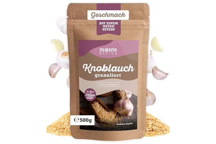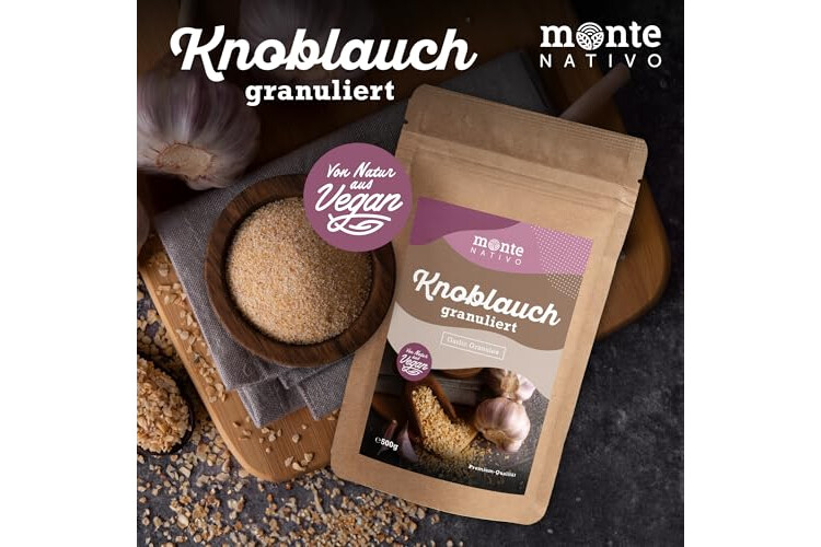 Knoblauch Granulat Monte Nativo (500g) - Aromatisches Knoblauchgranulat - Garlic Powder - Schonend getrocknete und aromatische Gewürze ideal zum Kochen und Würzen - Intesiver Geschmack