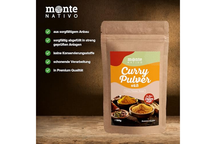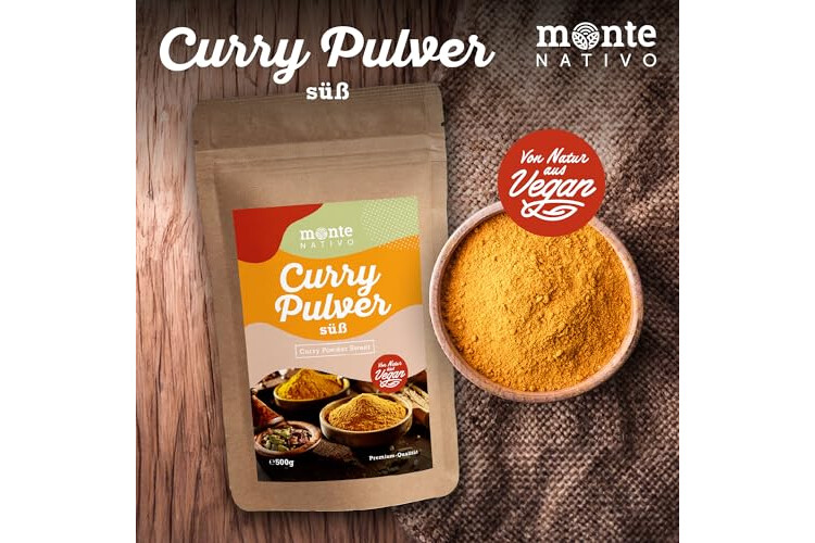 Curry Pulver süß Monte Nativo (500g) - Curry Gewürz - Süßes Currypulver - Schonend getrocknete und aromatische Gewürze ideal zum Kochen und Würzen - Intesives Aroma und Geschmack