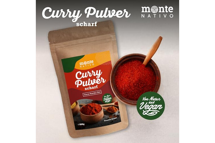 Curry Pulver scharf Monte Nativo (500g) - Curry Gewürz - Scharfes Currypulver - Schonend getrocknete und aromatische Gewürze ideal zum Kochen und Würzen - Intesives Aroma und Geschmack