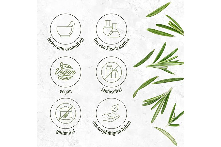 Unerreichte Qualität: Sorgfältig geerntet und getrocknet, um seine natürlichen Öle zu bewahren, garantiert unser Rosmarin ein lang anhaltendes, hervorragendes Aroma, das bei jedem Gebrauch frisch und kräftig bleibt.