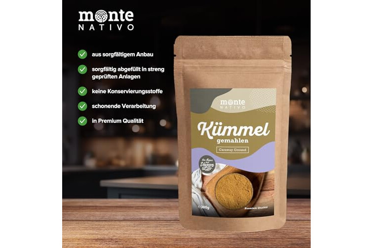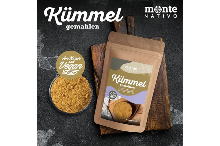 Kümmel gemahlen Monte Nativo (300g) - Fein gemahlene Kümmelsamen ideal für Kümmel Tee - Caraway - Schonend getrocknete und aromatische Gewürze ideal zum Kochen - Intesives Aroma und Geschmack