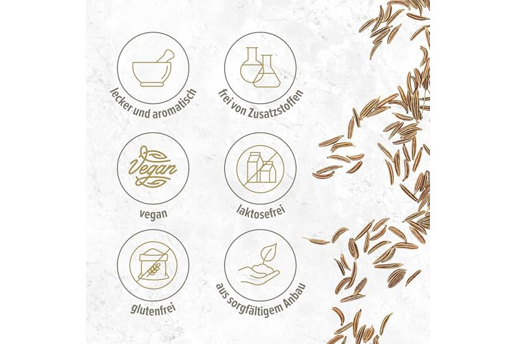 Erstklassige Qualität: Aus sorgfältig ausgewählten Kümmelsamen gewonnen, sorgfältig gemahlen, um die natürlichen Öle und den kräftigen Geschmack zu erhalten.