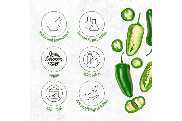 Rauchiges Gewürz: Verleihen Sie Ihren Gerichten die kräftige, rauchige Schärfe unserer gemahlenen Jalapeño, ein vielseitiges Gewürz, das für seinen robusten Geschmack und seinen ausgewogenen Kick bekannt ist.