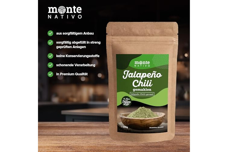 Jalapeno gemahlen Monte Nativo (150g) - Fein gemahlener Jalapeño Pfeffer - Schonend getrocknete und aromatische Gewürze ideal zum Kochen und Würzen - Intesives Aroma und Geschmack