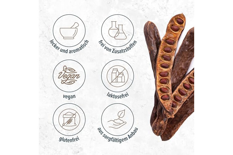 Kulinarische Vielseitigkeit: Von Smoothies und Backwaren bis hin zu Soßen und Süßspeisen - unser Johannisbrotpulver bietet einen einzigartigen und reichhaltigen Geschmack, der sowohl süße als auch pikante Rezepte ergänzt.