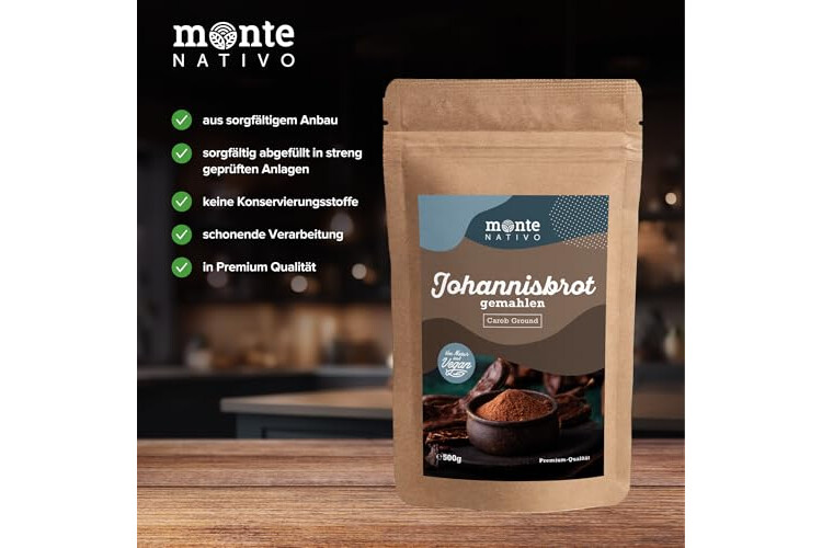 Johannisbrot gemahlen Monte Nativo (500g) - Carobpulver - Johannisbrotmehl - Carob Powder - Schonend getrocknete und aromatische Gewürze ideal zum Kochen und Würzen - Intesives Aroma und Geschmack