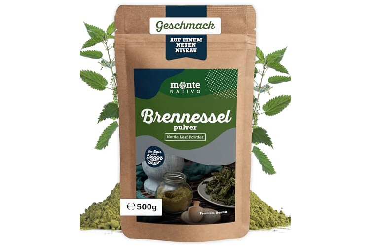 Brennnessel Monte Nativo (500g) - Brennnesselpulver ideal für Brennnesseltee - Schonend getrocknete und aromatische Gewürze ideal zum Kochen und Würzen - Intesives Aroma und Geschmack