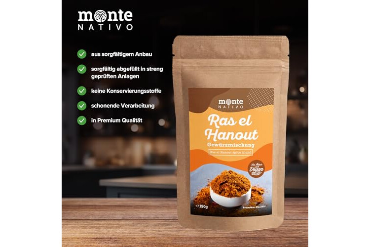 Ras el Hanout Gewürz Monte Nativo (150g) - Orientalische Gewürze - Raz el Hanout Gewürz - Schonend getrocknete und aromatische Gewürze ideal zum Kochen und Würzen - Intesives Aroma und Geschmack
