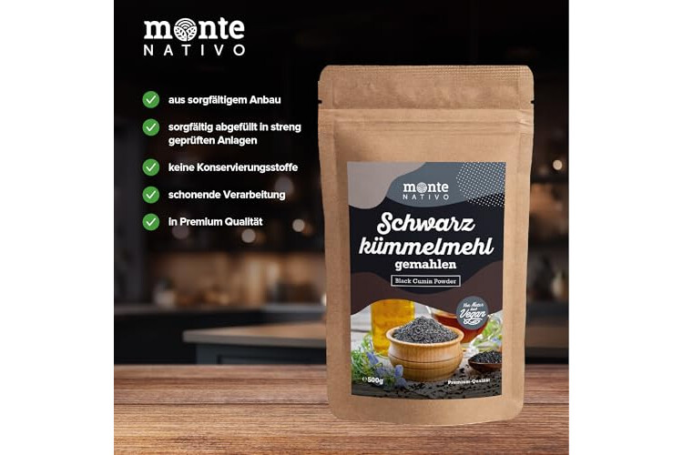 Schwarzkümmel gemahlen - Monte Nativo (500g) - Schwarzkümmelpulver - Schwarzkümmelmehl - Schonend getrocknete und aromatische Gewürze ideal zum Kochen und Würzen - Intesives Aroma und Geschmack
