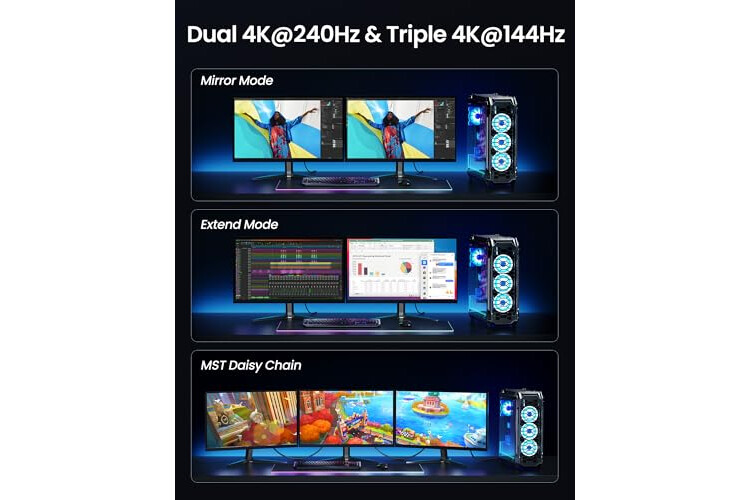 🎄【Ideal für FPS- und AAA-Spiele】Das 80Gbps DisplayPort Kabel 2M ist speziell für High-End Gamer entwickelt. Mit VRR, FEC, ALLM und DSC 1.2a sorgt es für eine flüssige, unterbrechungsfreie Bilder – ohne Lags, Tearing oder Flimmern. MST-Technologie ermöglicht Multi-Monitor-Setups, die deine Gaming-Welt erweitern. Dynamisches HDR verbessert dunkle Szenen und Details, während 32-Bit-Audio und verlustfreier Surround-Sound-Throughput dir helfen, Feinde in FPS- und AAA-Spielen zu orten.