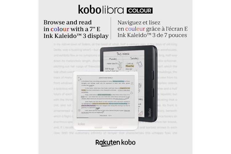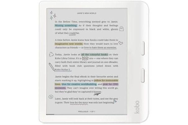 Kobo Libra Color | eReader | 17,8 cm (7 Zoll) blendfreie Farbe E Ink Kaleido™ 3 Display | Dunkelmodus-Option | Hörbücher | wasserdicht | Weiß