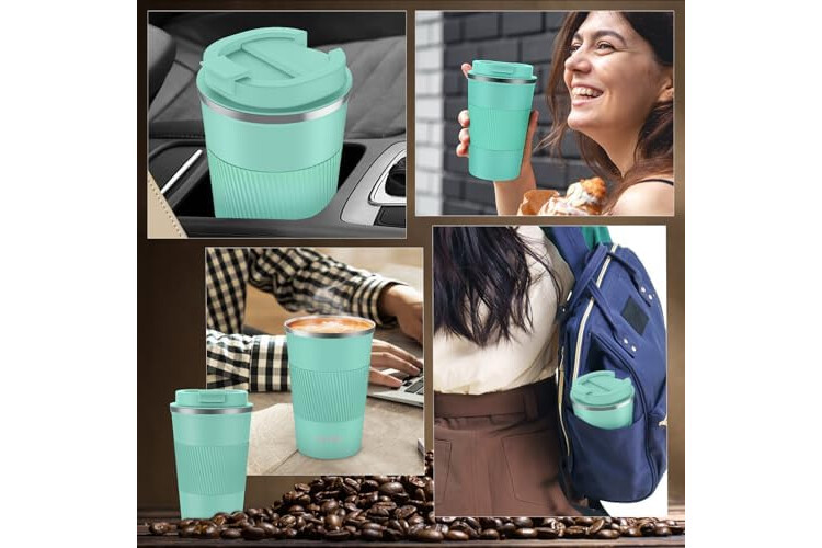 KETIEE Kaffeebecher to go,380ml Thermobecher Kaffee-to-go,Kaffeebecher Thermo,Doppelwandig Reisebecher Travel Mug,Vakuum Isolierbecher mit auslaufsicherem Deckel für Kaffee und Tee,Minzgrün